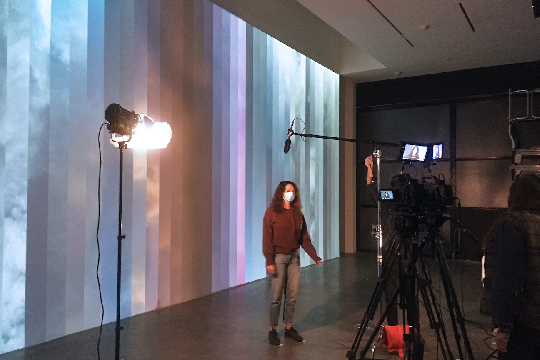 The Williamson Gallery exhibition SKY (2020-2021) featured works of contemporary art and science artifacts challenging provincial stereotypes of what lies above. Conceived and curated by ArtCenter Exhibitions VP Stephen Nowlin, the exhibition closed to the public after three weeks due to the 2020 Covid-19 pandemic. As part of a campaign to create online access to SKY, Nowlin approached Caltech Theater Arts Director Brian Brophy and a team of ArtCenter filmmakers to create SKY Stories: Cosmologists Occupy an Art Space. The outcome is an exhibition/storytelling duet in three parts, as an account of each astrophysicist’s journey to science unfolds in harmony with the surrounding exhibition.